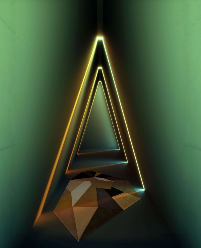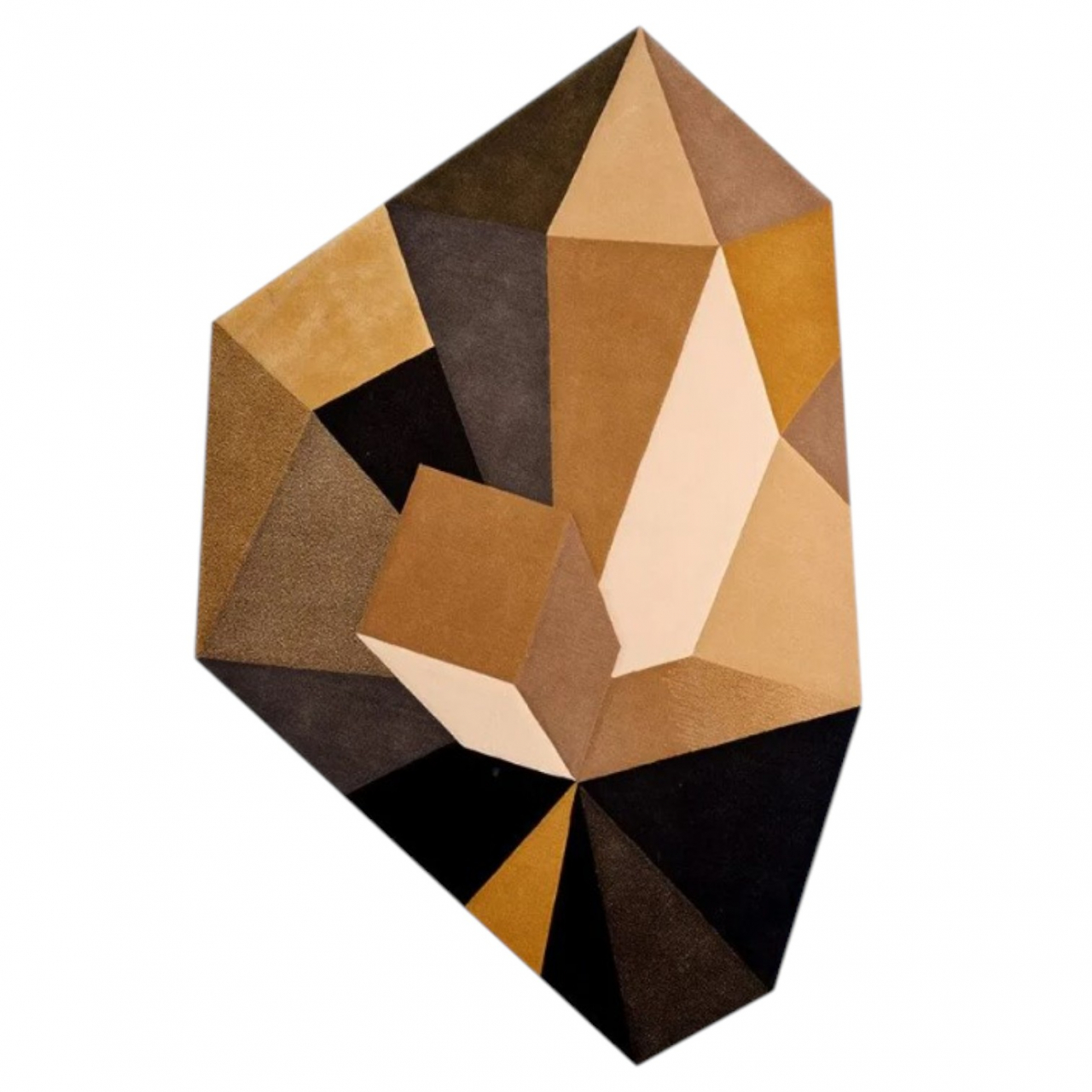 Ковер в виде абстрактного кристалла с объёмным геометрическим рисунком. Тёплая палитра — от светло-бежевого до глубоких оттенков карамели и шоколада — создаёт ощущение уюта и природного тепла. Фасеточная структура придаёт ковру скульптурный характер, превращая его в выразительный арт-объект. Идеально подходит для современных интерьеров, где ценится сочетание дизайна, фактуры и естественных тонов.