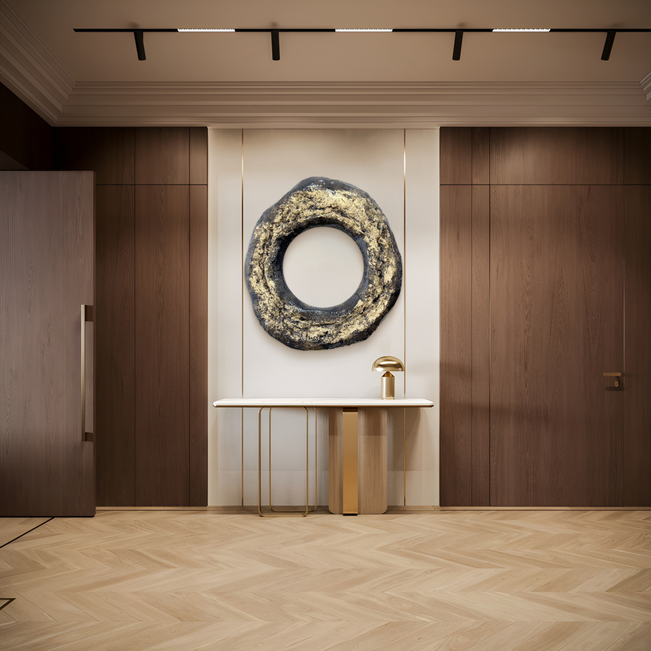 Круг — символ завершённости, бесконечности и внутреннего баланса. Неровная геометрия придаёт объекту естественность и живую пластичность, делая его центром притяжения в пространстве.