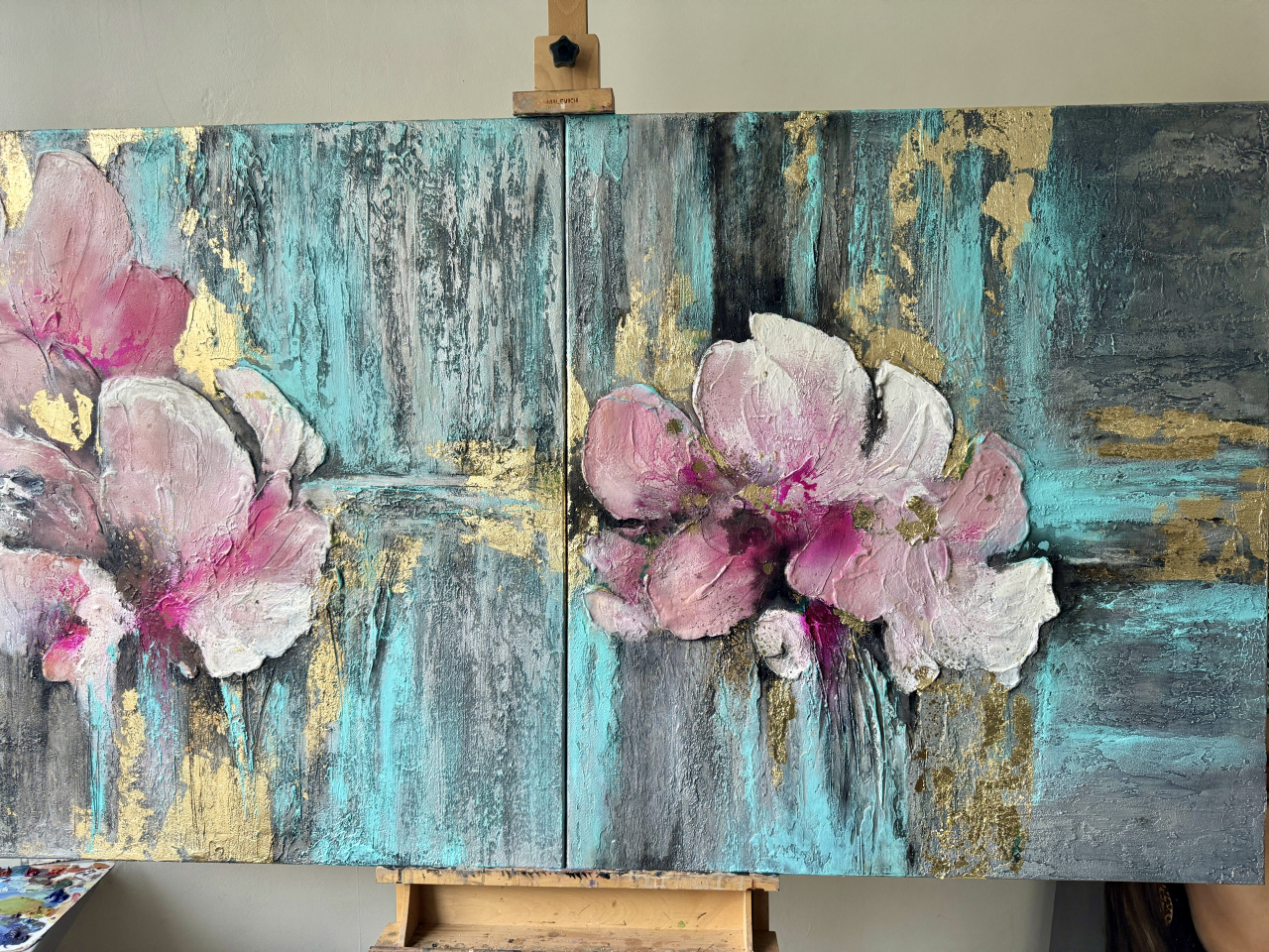 Есть возможность приобрести как отдельную картину, так и в виде диптиха.Холст 100 х 90 смФактура, масло