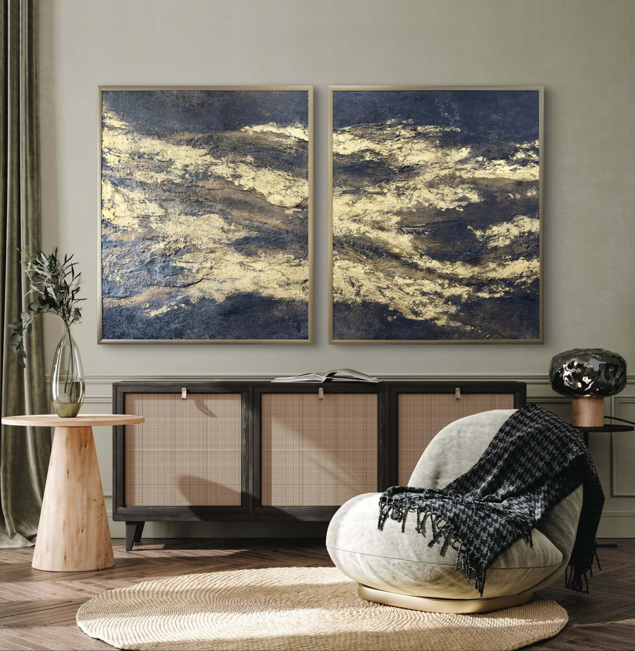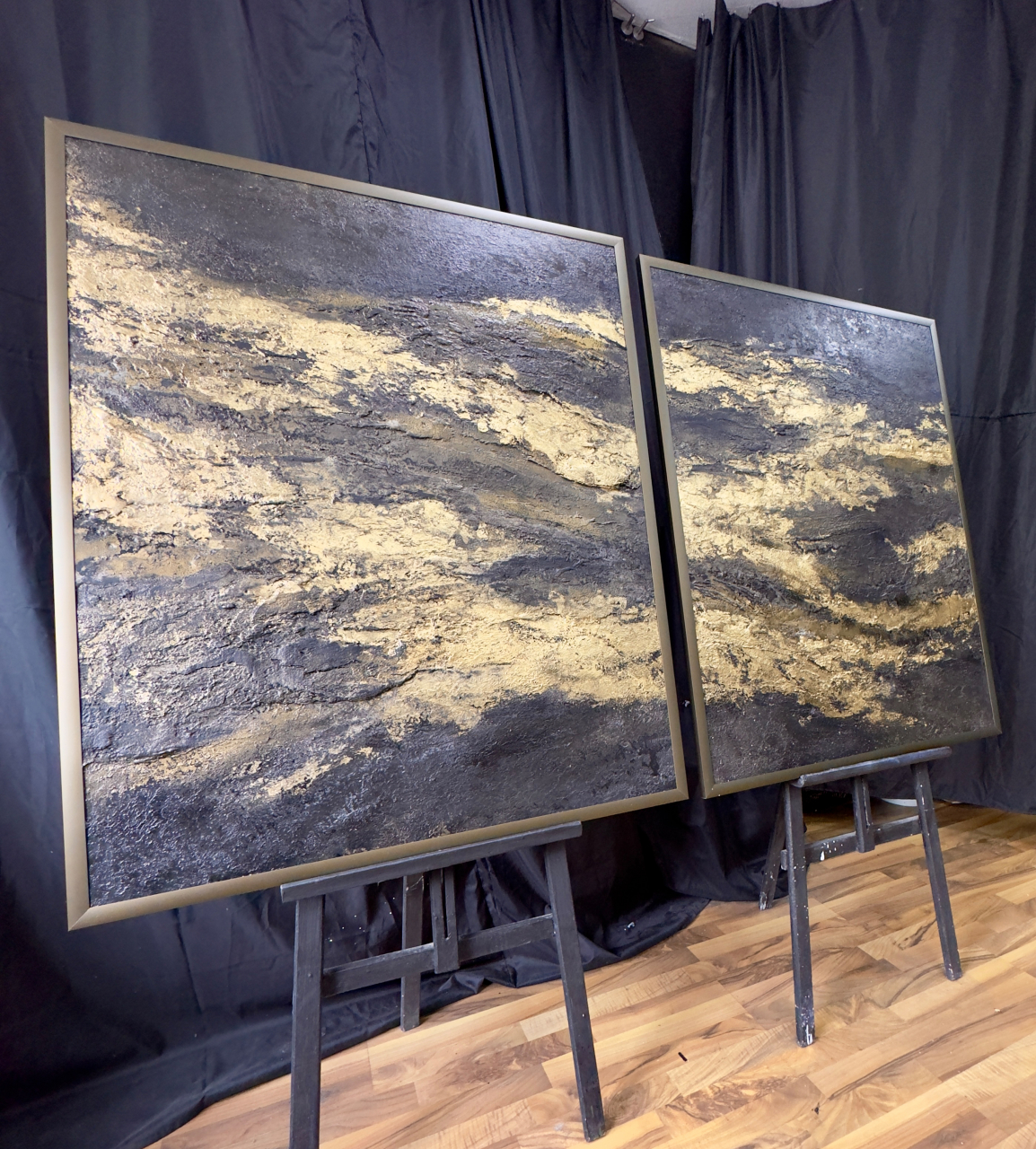 Перед тобой диптих.Чёрные, как ночь до начала мира.Золотые, как свет, который уже дышит сквозь темноту.