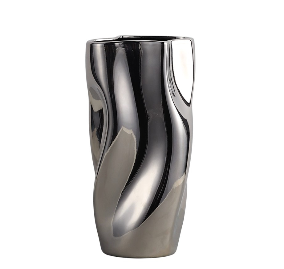 Лаконичные пропорции делают её универсальным акцентом: на консоли, столе или полке она выглядит одинаково эффектно. Керамика с серебристым покрытием придаёт интерьеру современный лоск, а органичная форма вносит лёгкую художественную небрежность.