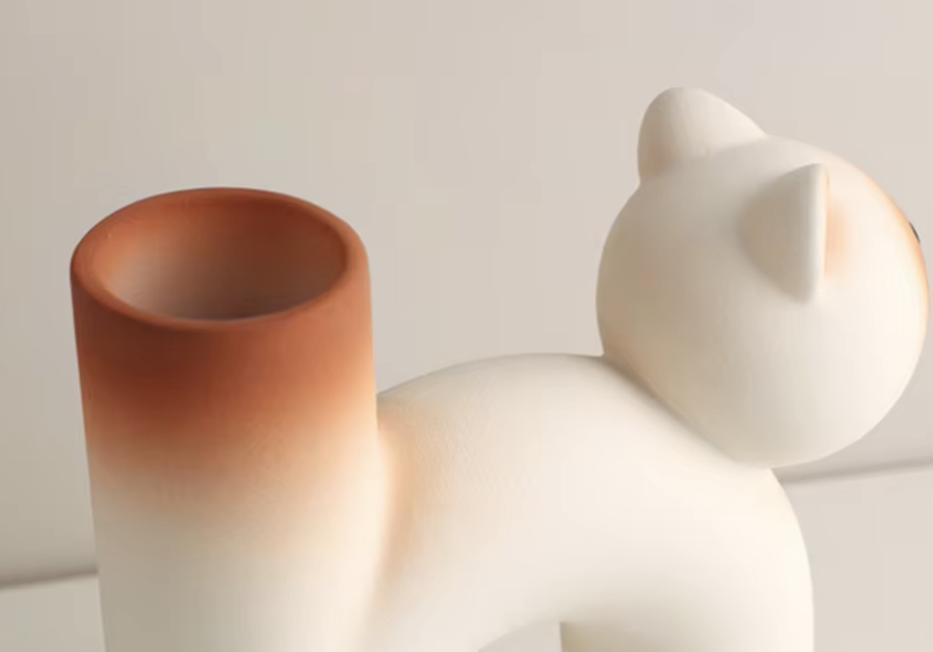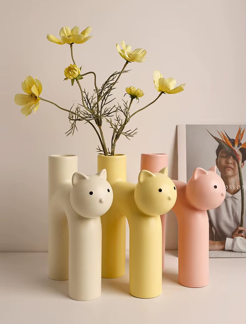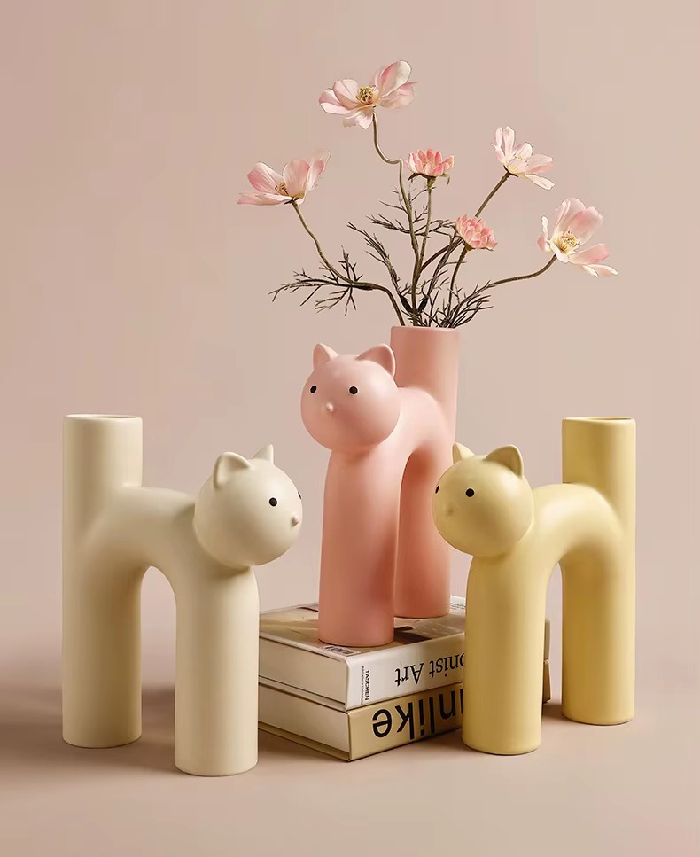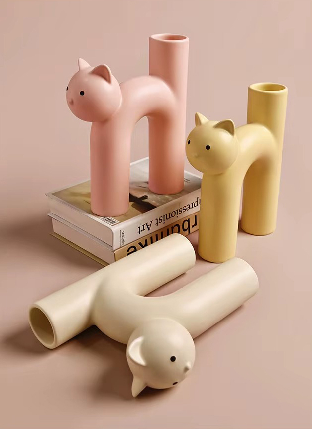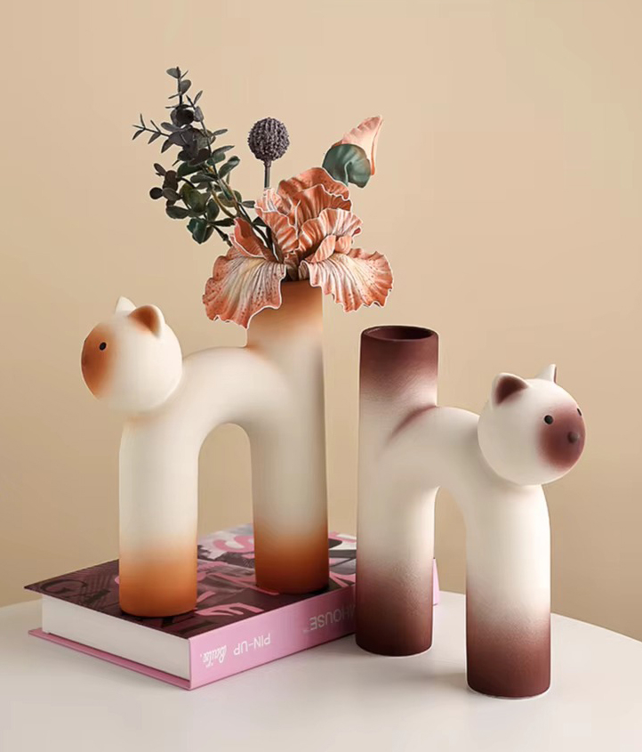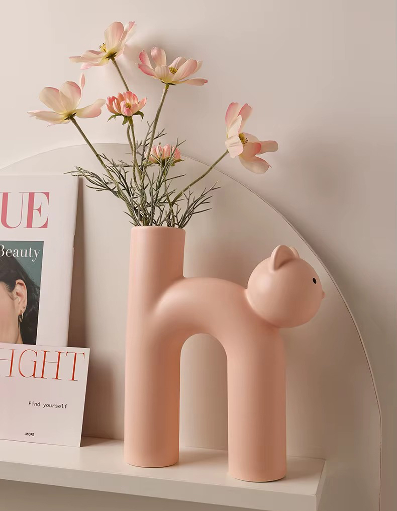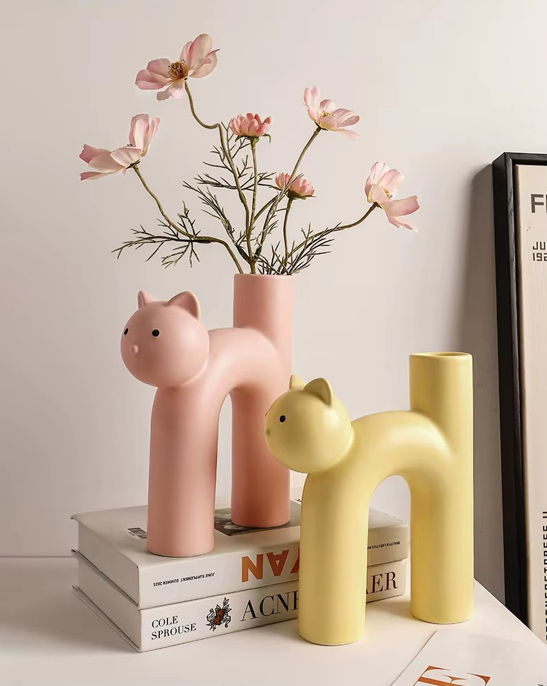 Очаровательная керамическая ваза в форме котика — тёплый и забавный элемент декора. Плавные линии и лаконичная форма придают композиции уют и доброжелательность.