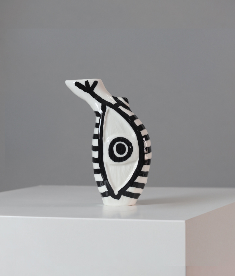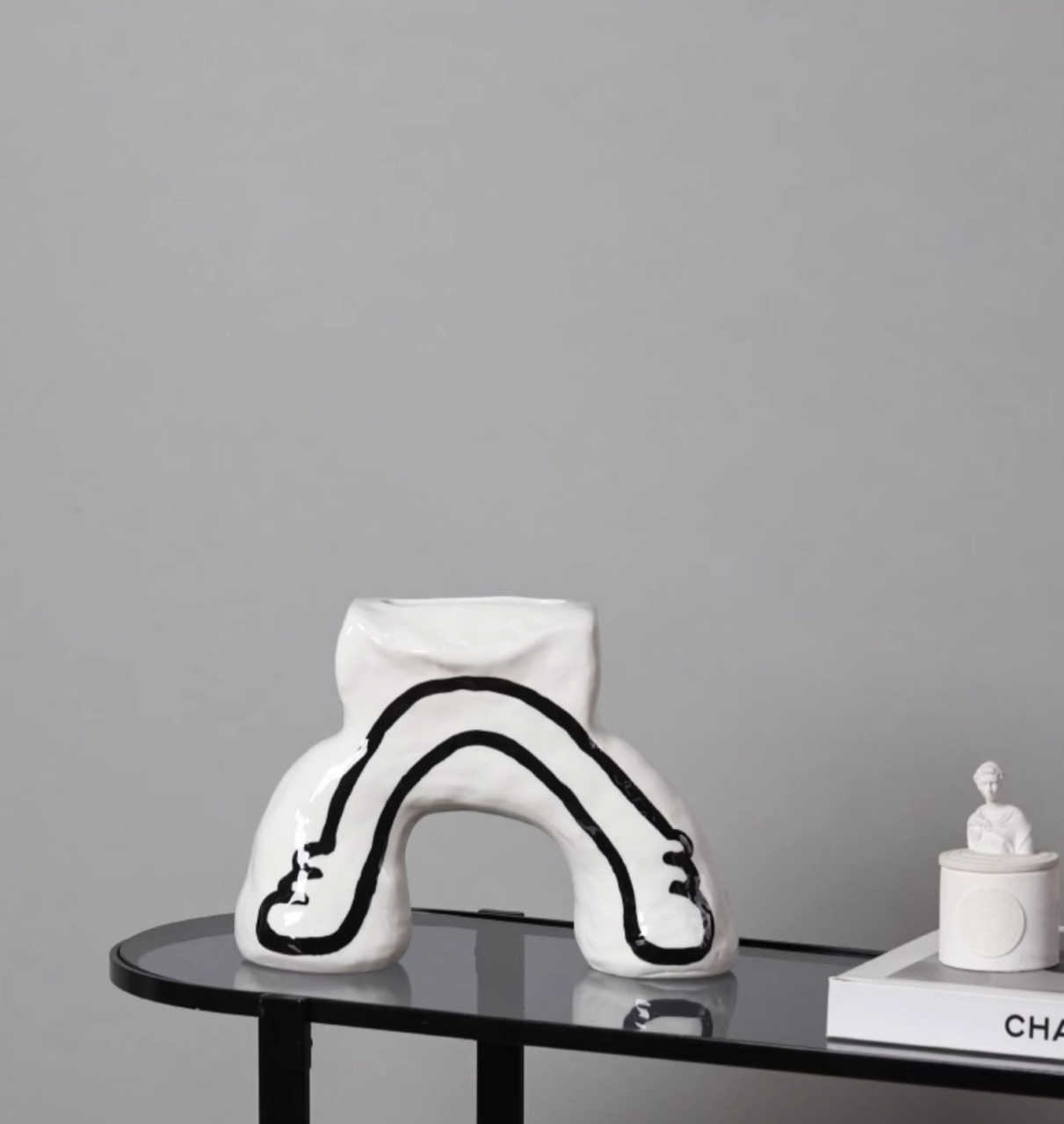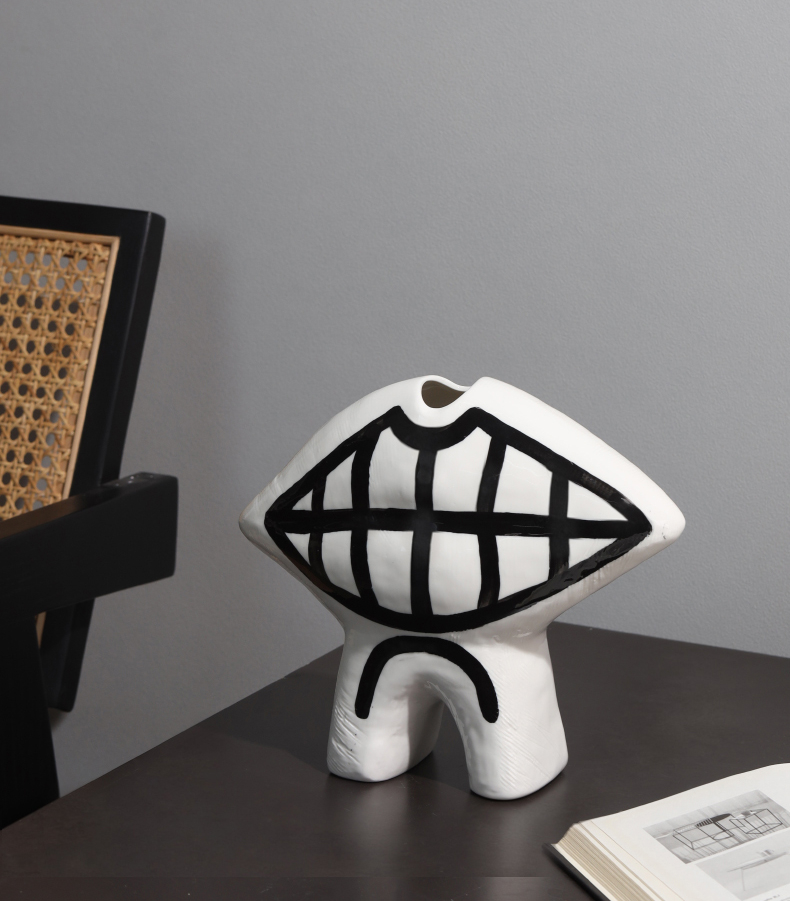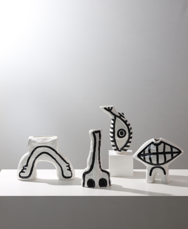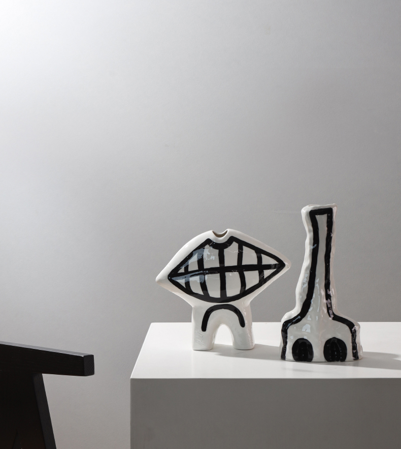 Эти вазы выглядят как ожившие рисунки — ироничные, дерзкие, с элементами наивного искусства. Их графичные линии и свободные формы создают ощущение спонтанности и творческой энергии. Это не просто декор, а визуальный диалог между искусством и повседневностью — смелый штрих в современном пространстве.