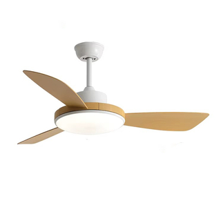 Потолочный вентилятор с LED-светильником и аэродинамичными лопастями Современный потолочный вентилятор с тремя изящно изогнутыми лопастями обеспечивает мощный, но тихий поток воздуха, идеально подходящий для жилых и коммерческих интерьеров. Встроенный LED-светильник даёт мягкое и равномерное освещение, а удобное управление (пульт ДУ или настенный переключатель — зависит от комплектации) делает использование максимально комфортным.