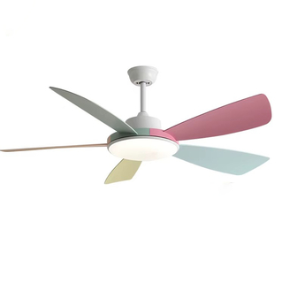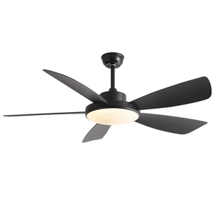 Потолочный вентилятор с LED-светильником и аэродинамичными лопастями Современный потолочный вентилятор с пятью изящно изогнутыми лопастями обеспечивает мощный, но тихий поток воздуха, идеально подходящий для жилых и коммерческих интерьеров. Встроенный LED-светильник даёт мягкое и равномерное освещение, а удобное управление (пульт ДУ или настенный переключатель — зависит от комплектации) делает использование максимально комфортным.