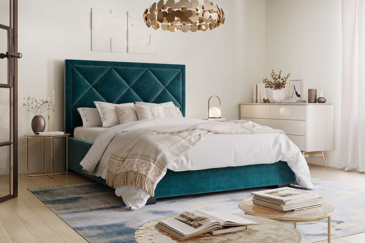 Элегантная кровать с выразительным геометрическим изголовьем станет акцентом спальни и добавит интерьеру индивидуальности. Мягкое основание и тщательно проработанные пропорции создают ощущение комфорта и визуальной лёгкости, а лаконичный дизайн легко сочетается как с минимализмом, так и с современным классическим стилем.