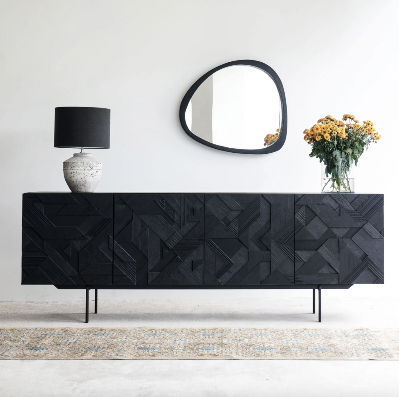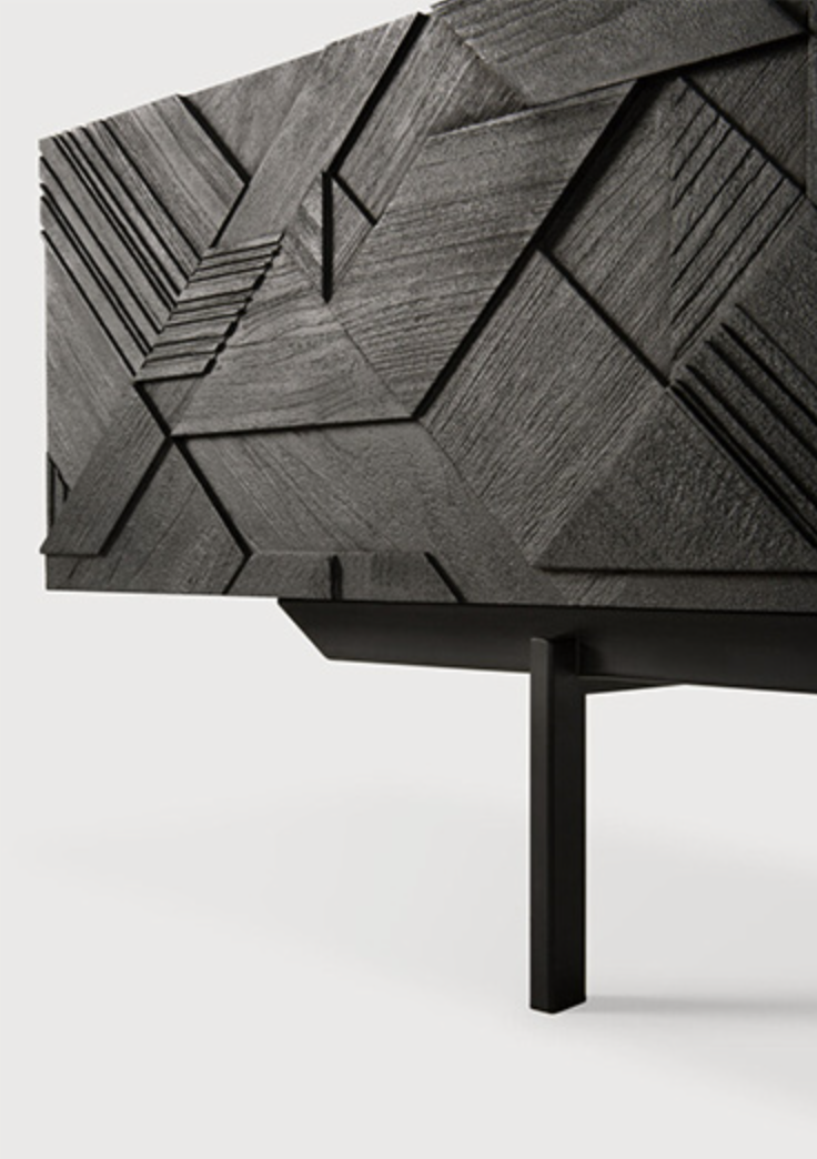 Эффектный комод из массива дерева с выразительным графичным фасадом — стильный акцент для современного интерьера. Рельефный узор подчёркивает глубину текстуры дерева и создаёт игру света и тени, а лаконичные металлические ножки придают конструкции визуальную лёгкость. Вместительные отделения скрыты за строгими фасадами, сохраняя чистоту линий. Идеальный выбор для интерьеров в стиле modern, loft или contemporary, где ценят характер и дизайн.