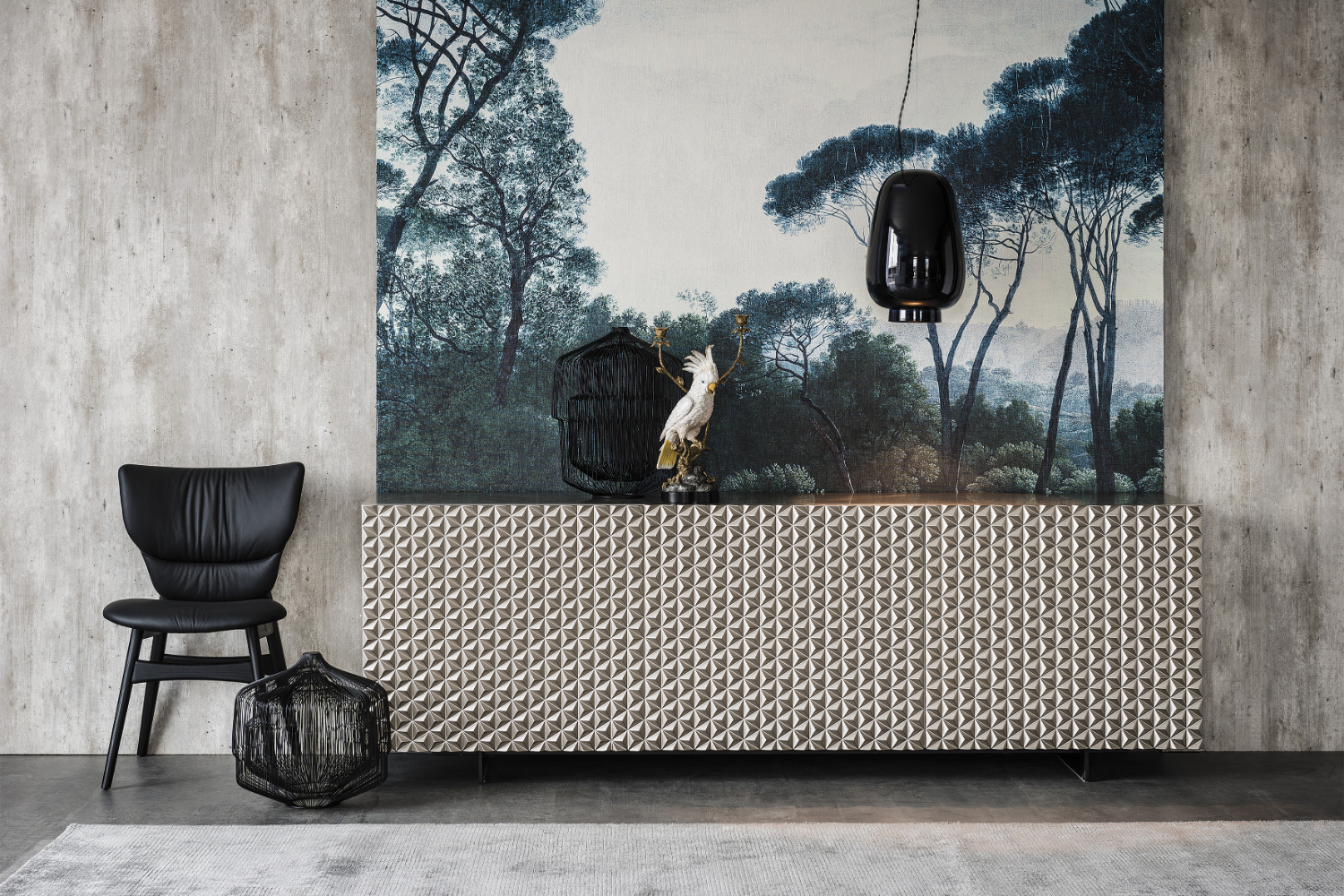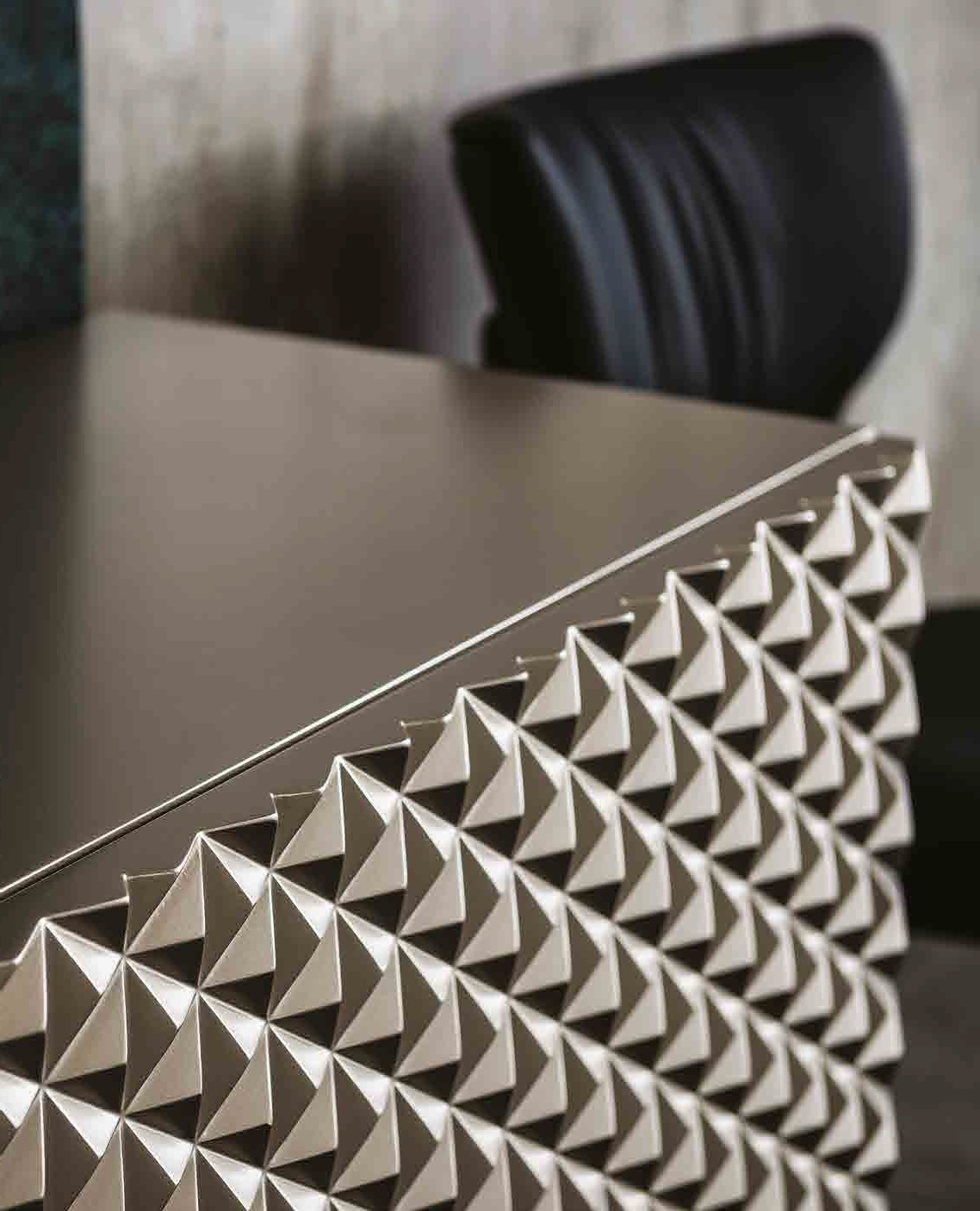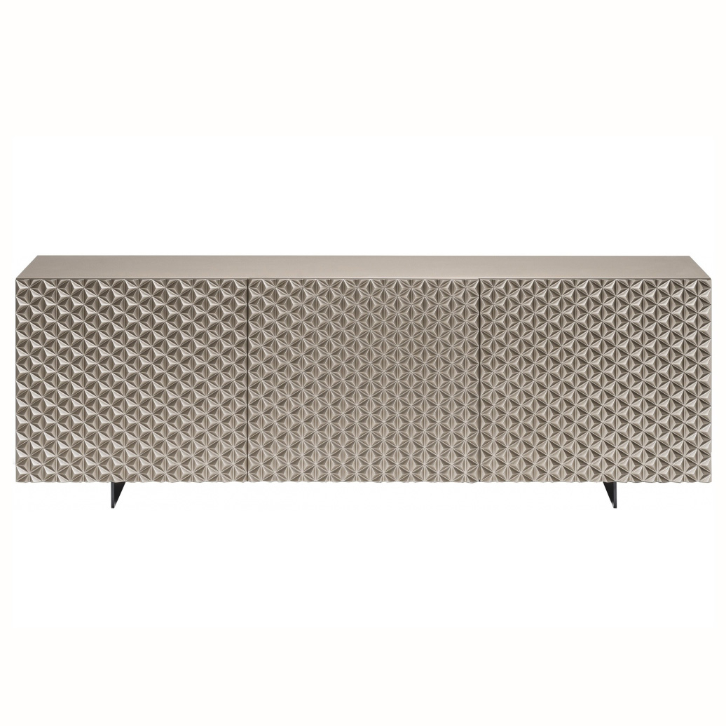 Элегантный дизайнерский комод с выразительным рельефным фасадом — сочетание архитектурной геометрии и утончённого стиля. Объёмный узор создаёт эффектную игру света и тени, придавая мебели глубину и статусный вид. Лаконичный силуэт и нейтральный оттенок делают комод универсальным решением для современных интерьеров, а вместительные отделения обеспечивают удобное хранение.