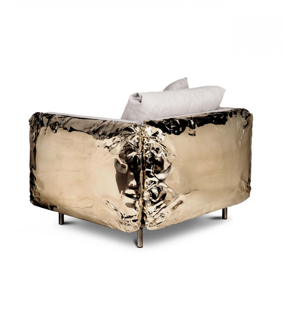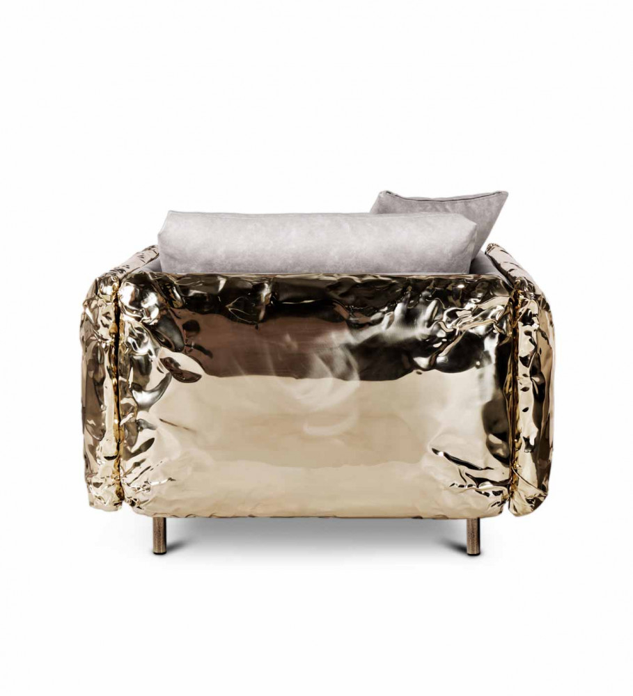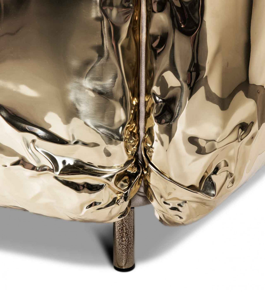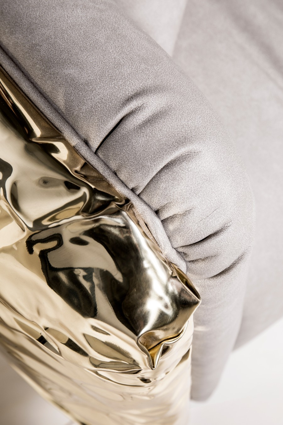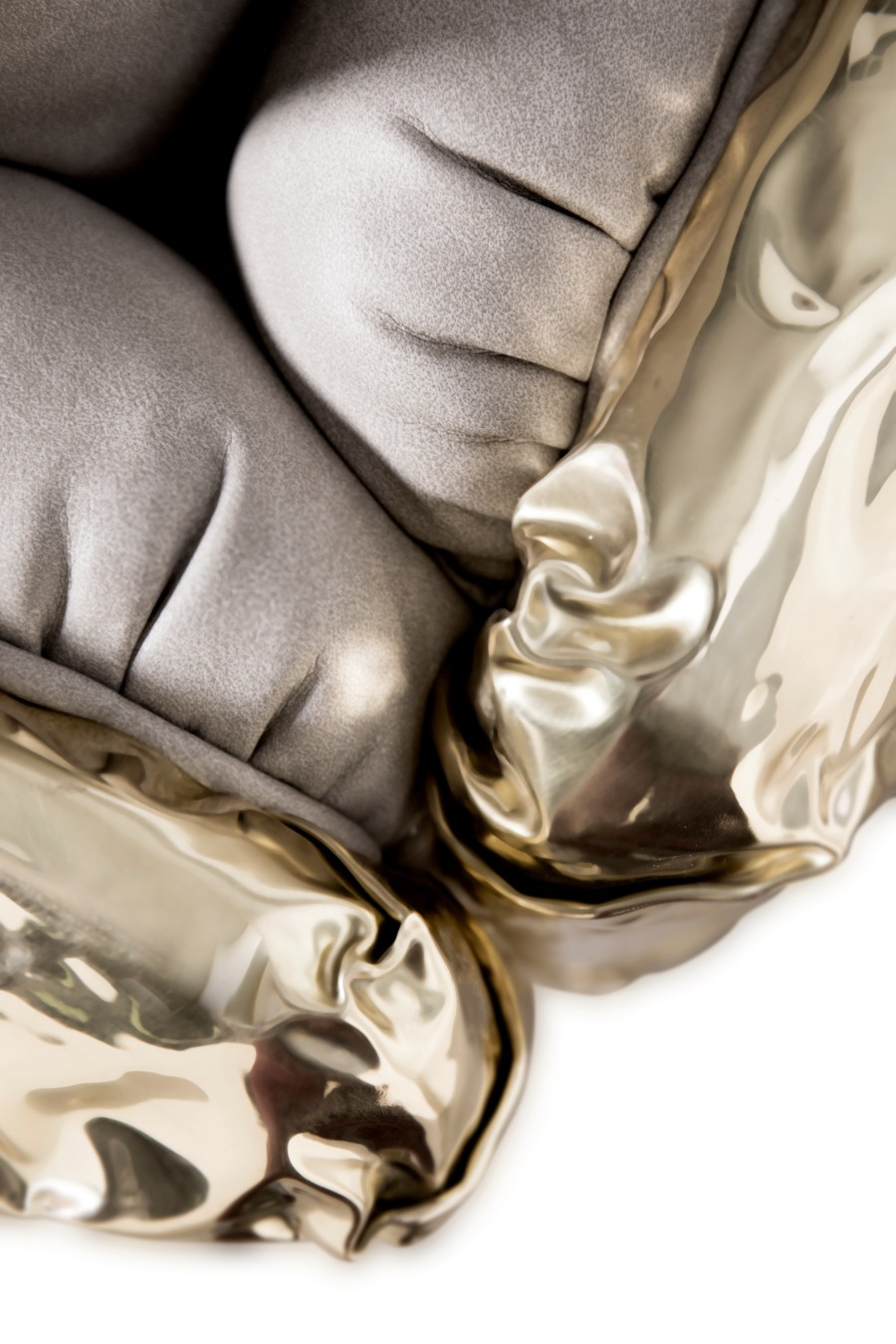 Мягкая посадка и объёмная форма создают ощущение уюта и расслабления. Текстильная обивка подчёркивает тактильность модели, а боковые элементы с художественной металлической фактурой добавляют интерьеру характер и визуальную глубину. Лаконичные опоры поддерживают баланс между массивностью и лёгкостью. Кресло органично впишется в современные жилые и общественные пространства, выступая самостоятельным интерьерным объектом.