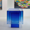 Дизайнерский журнальный стол Glass Square изготовлен из акрила. Сильной стороной модели является то, что геометрически вырезанные стенки имеет тщательно спланированную цветовую насыщенность – от полной прозрачности до очень интенсивного, глубокого и непрозрачного темно-синего цвета. Благодаря этому стенки не только проникают друг в друга, но и имеют в наших глазах разную прочность, глубину и вес. Плавные очертания и острые углы напоминают минимализм модернистского дизайна, а их скульптурные композиции стирают различия между дизайном и искусством.