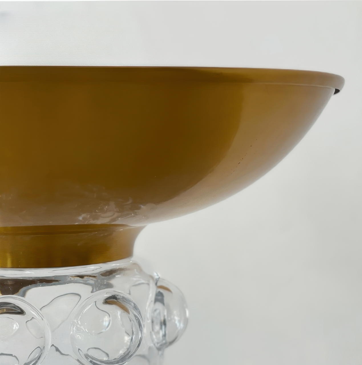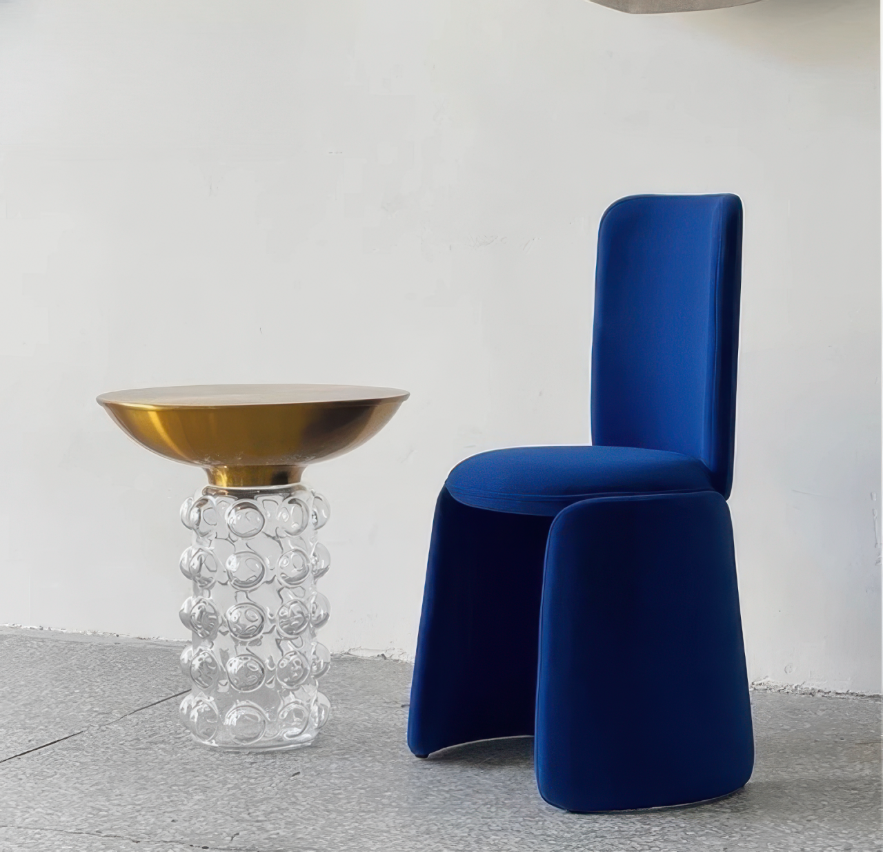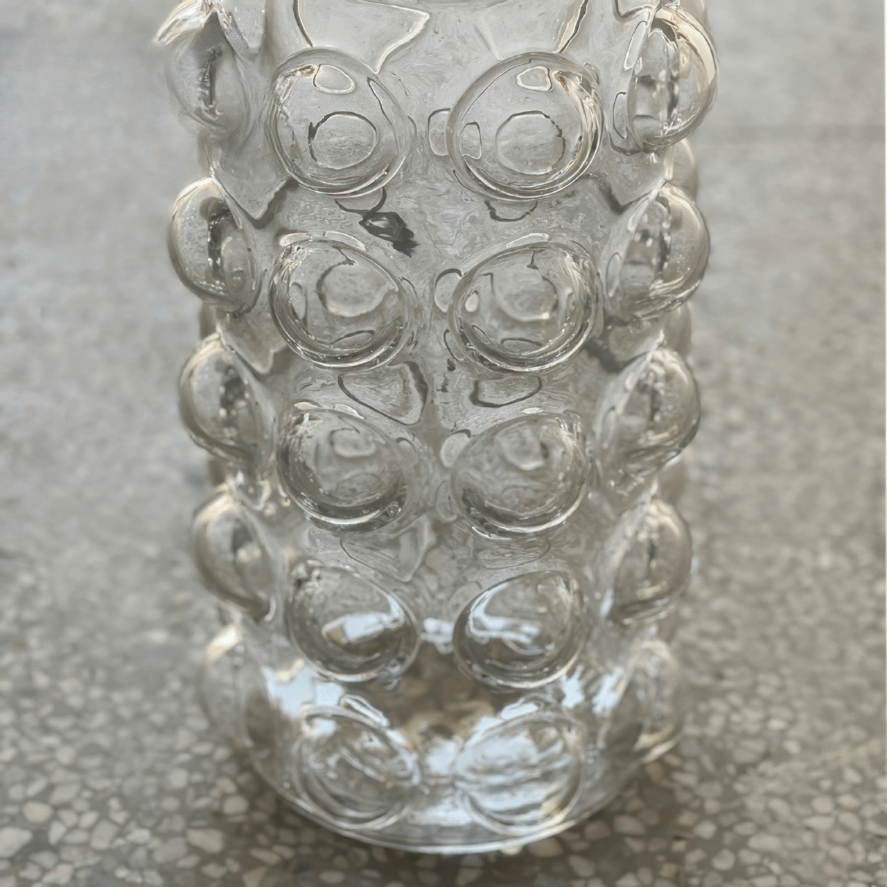Современный придиванный столик с оригинальным основанием из фактурного стекла, украшенным круглыми пузырьками воздуха, и элегантной круглой столешницей. Сочетание прозрачности и блеска создает эффект легкости и изысканности, а игривые элементы дизайна добавляют интерьеру динамики. Универсальная модель органично впишется в современные гостиные, спальни или зоны отдыха, становясь стильным акцентом пространства.