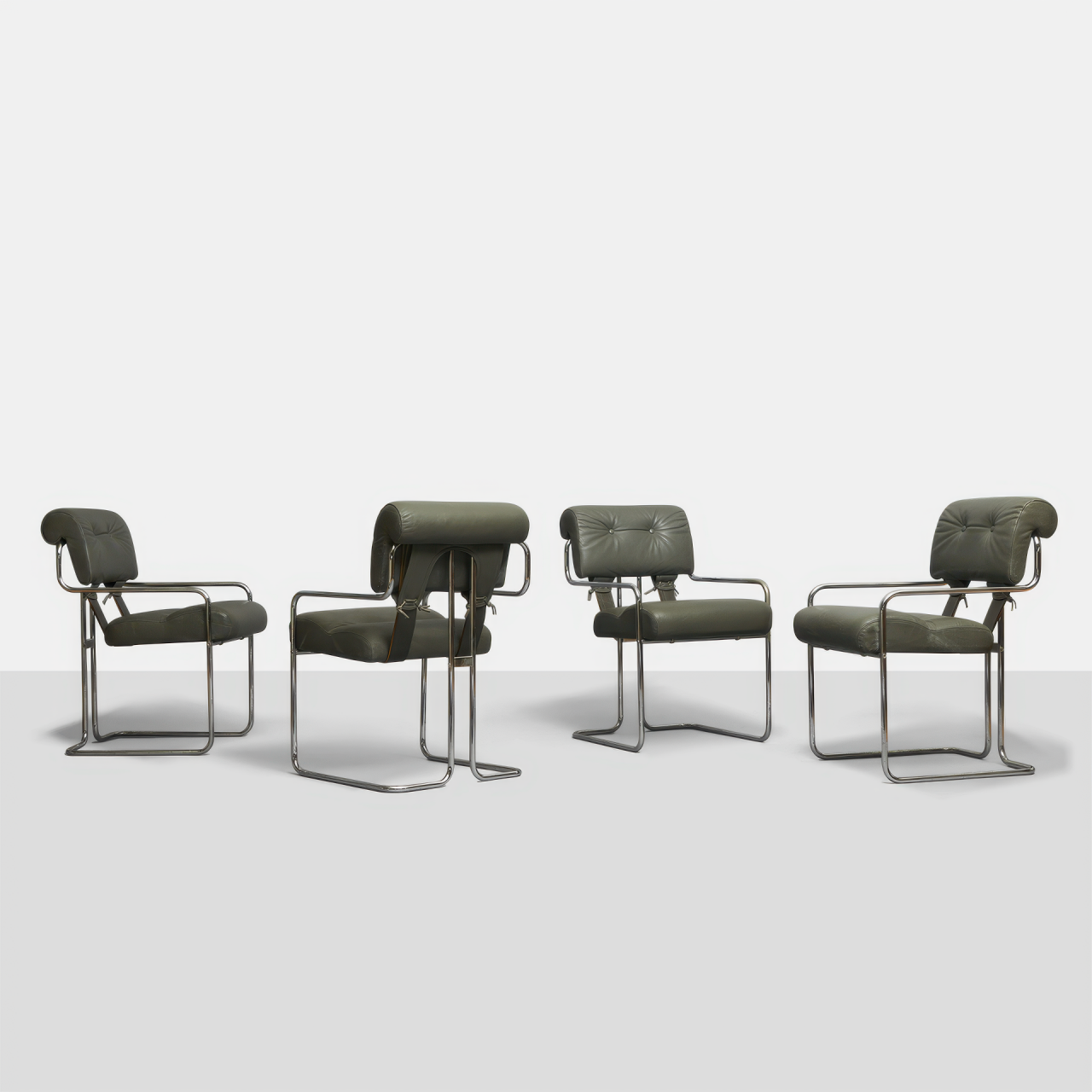 Четкие прямые линии и бескомпромиссная геометрия — это кресло воплощает квинтэссенцию стиля Баухаус. Плоская кожаная спинка строгой формы подчеркивает философию «форма следует за функцией», предлагая комфорт без лишних деталей. Жесткий каркас с открытой конструкцией визуально облегчает форму, сохраняя абсолютную устойчивость.