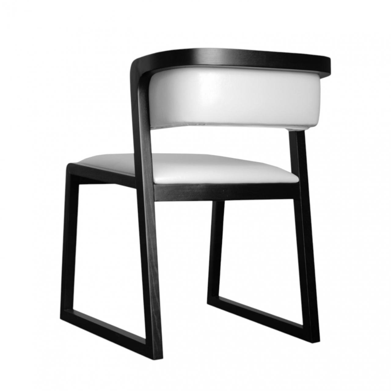Стул с современным лаконичным дизайном и выразительной геометрией. Каркас выполнен из массива ясеня, что обеспечивает прочность конструкции и подчёркивает благородную текстуру натурального дерева. Сиденье и спинка обиты практичной PU-кожей, которая приятна на ощупь, проста в уходе и подходит для ежедневного использования. Контраст тёмного деревянного каркаса и светлой обивки создаёт элегантный и графичный образ. Стул гармонично впишется в обеденную зону, современный интерьер кухни, кабинета или стильного общественного пространства.
