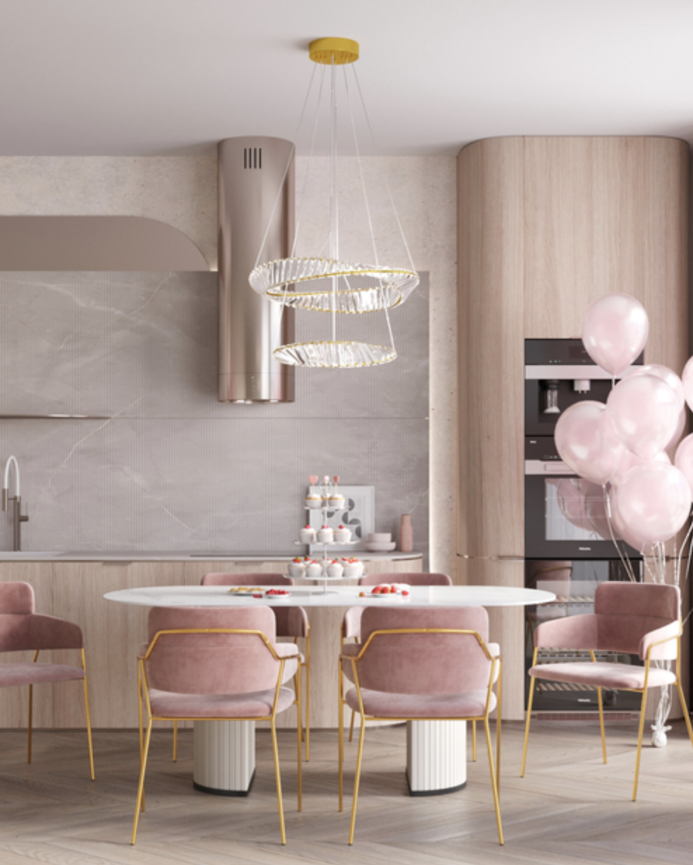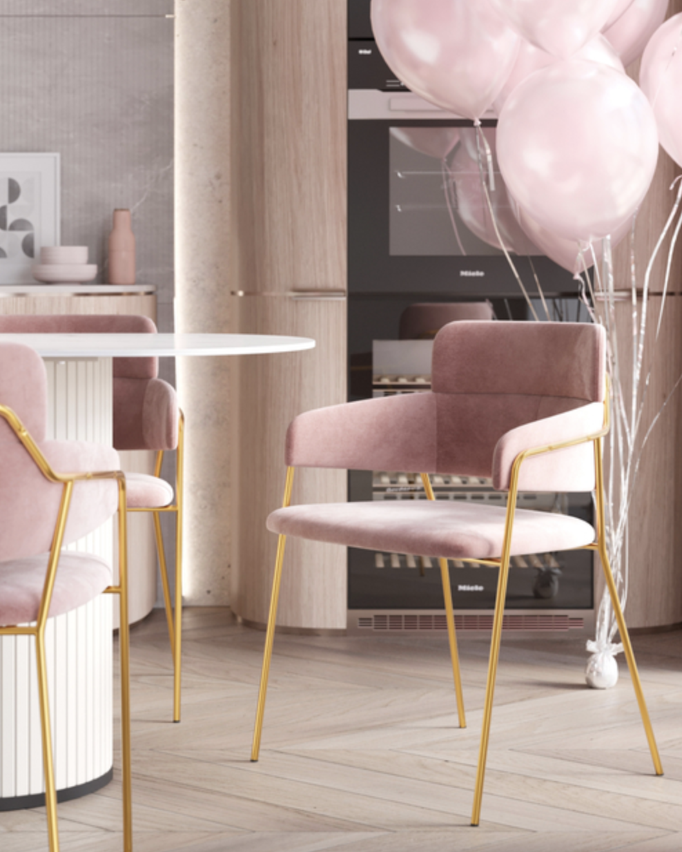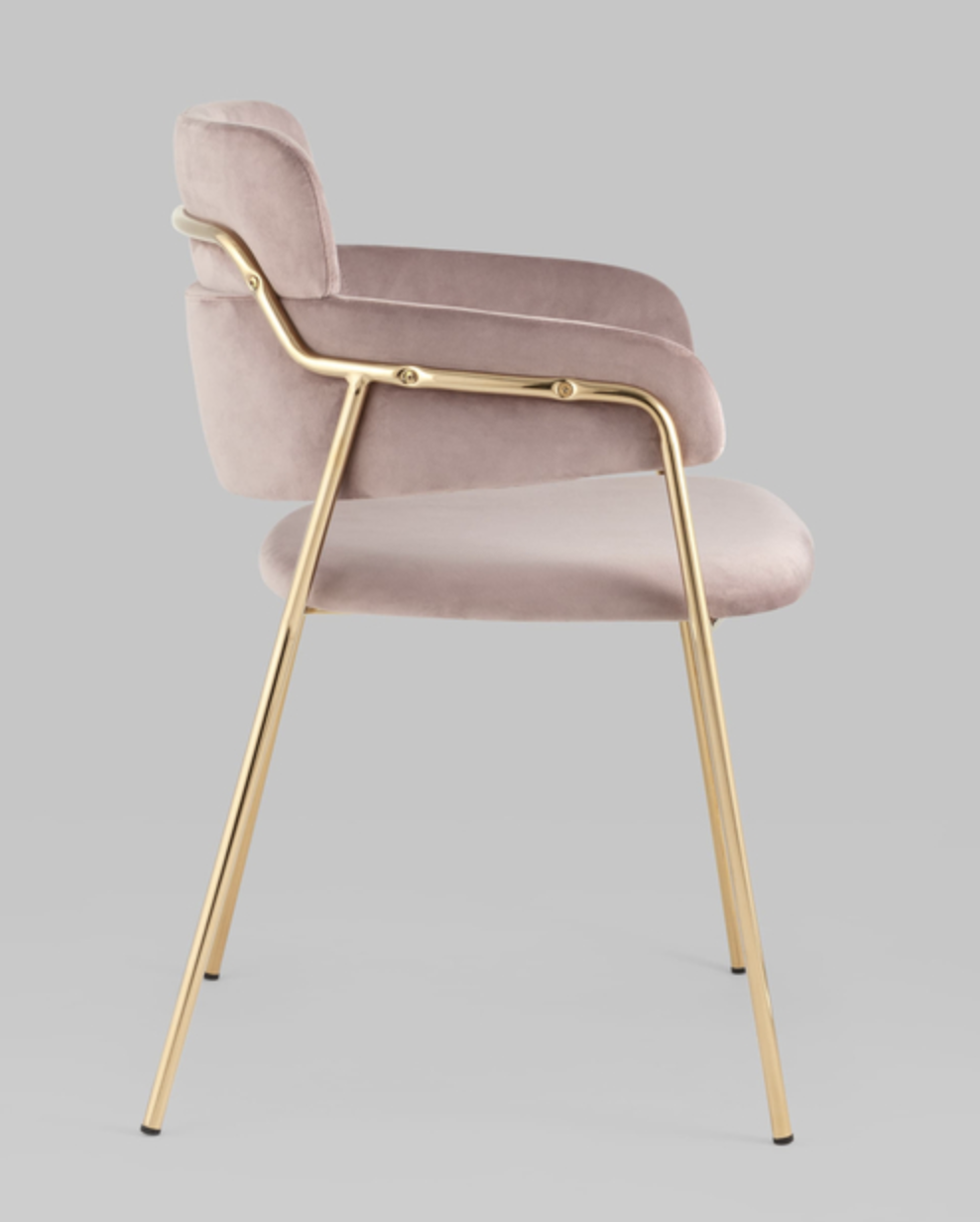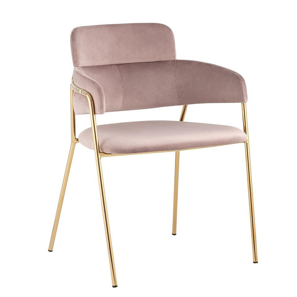 Элегантный обеденный стул с мягкой обивкой в нежном пудровом оттенке — изящное сочетание комфорта и современного шика. Обтекаемая форма спинки обеспечивает удобную посадку, а тонкие металлические ножки с золотистым покрытием добавляют лёгкости и утончённости. Стул идеально подойдёт для столовой, туалетного столика или зоны ожидания, становясь стильным акцентом интерьера.