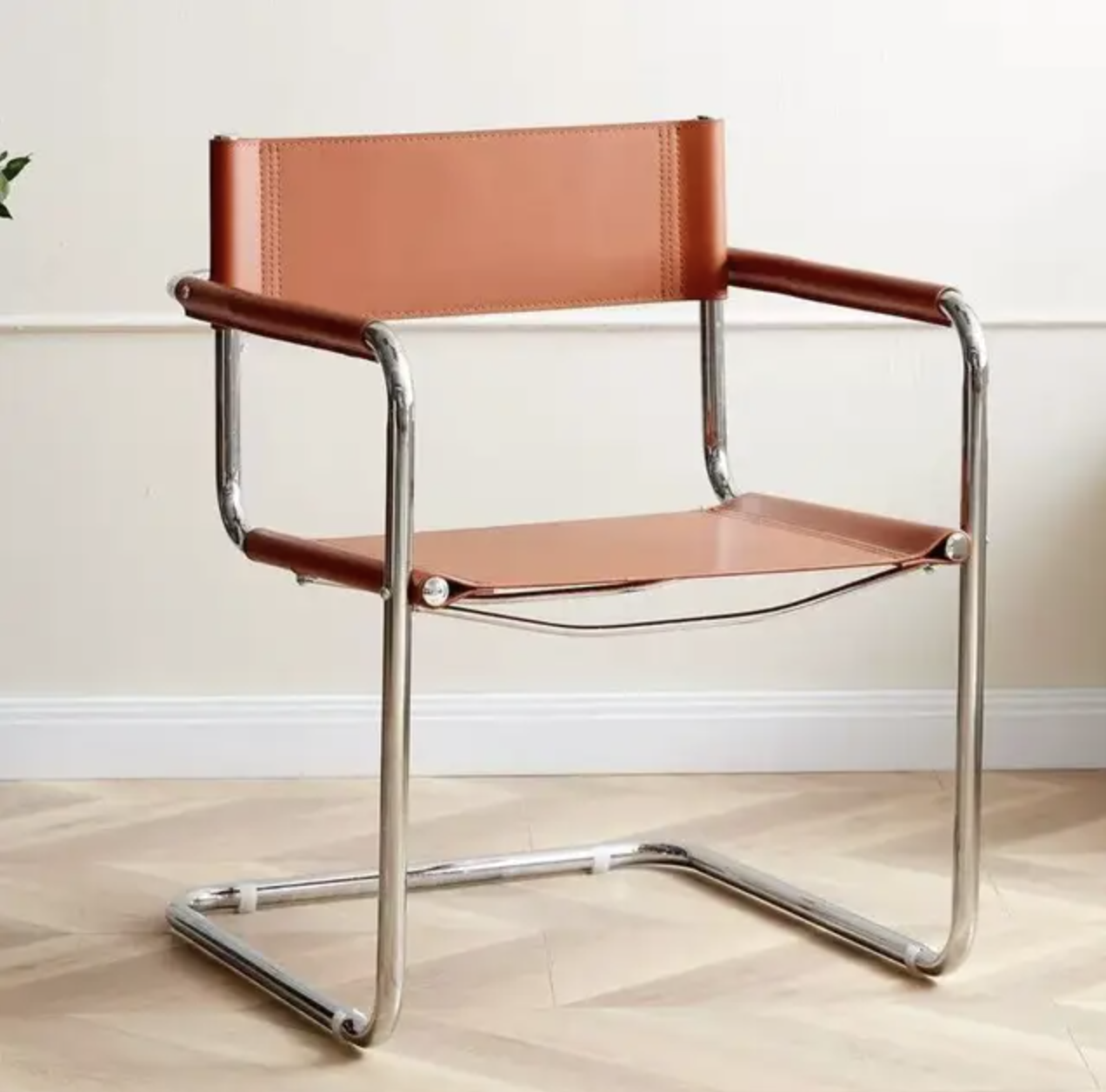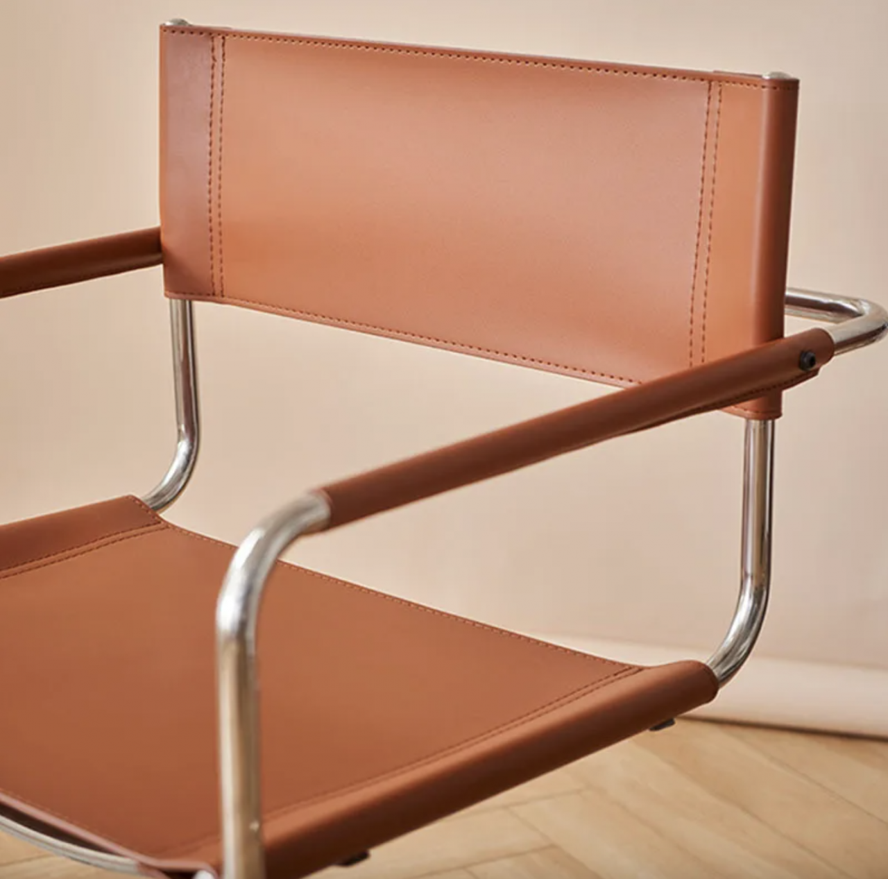Лаконичный и выразительный стул с консольным основанием из полированной стали — икона современного дизайна. Сиденье и спинка выполнены из прочной кожаной стяжки, которая со временем становится только мягче и комфортнее. Благодаря гибкости консольной конструкции стул слегка пружинит, обеспечивая удобство посадки и стильный акцент в интерьере.