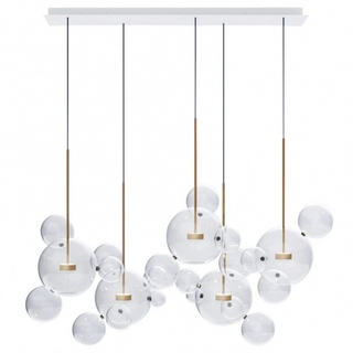 Подвесной светильник Bolle Bubbles можно собирать в различные формы, что позволит удовлетворить вкус любого человека. Дизайнерский светильник сделан из выдувного стекла . Светильник Bolle Bubbles – неповторимый, утонченный и элегантный, с богатой Венецианской историей. Этот метод выдувного стекла гарантирует сильную, точную стеклянную структуру, позволяющую плафонам быть собранными в стеклянные сферы с латунными соединителями между собой.
