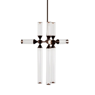 Подвесной потолочный светильник Castle 9-01 разработал основатель компании Roll & Hill Джейсон Миллер. Внешний вид модели отдаленно напоминает башенки замка. Однако название светильника Castle относится не к средневековым строениям, а к шахматным фигурам. Ладья может перемещаться по доске на любые расстояния, впрочем, ходить она может только по вертикали или горизонтали. Так и источники света Castle расположены четко в этих плоскостях, но длина и количество стеклянных трубок варьируются.