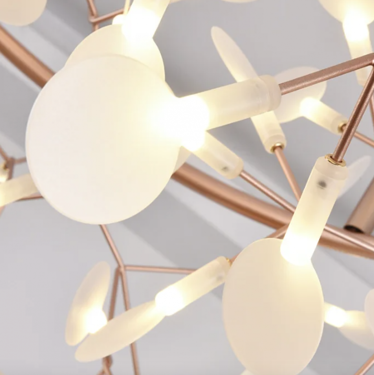 Люстра Moooi Heracleum the Big - оригинальный светодиодный куст с тонкими веточками и соцветиями на круглом каркасе. К основному кольцу прикреплены тонкие металлические прутья, на концах которых находятся светодиоды с плафонами из полипропилена. Они напоминают листья или цветы диковинного дерева, которые светятся в темноте, создавая волшебную атмосферу. Люстра Moooi Heracleum the Big станет центральным звеном в интерьере стильной кухни или гостиной, уютной спальни.