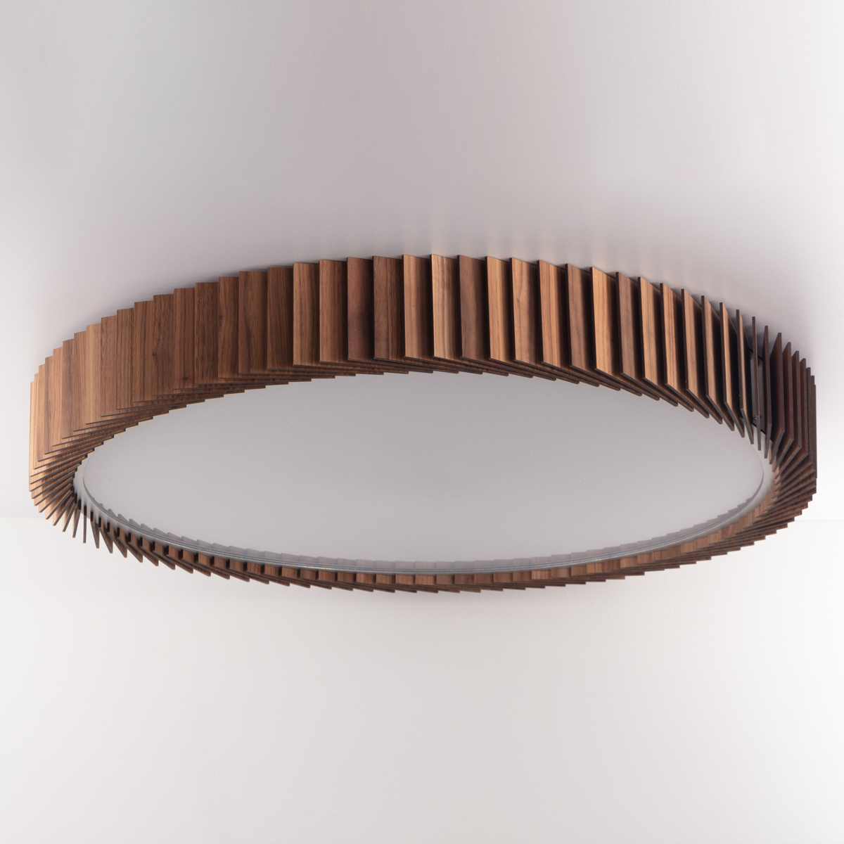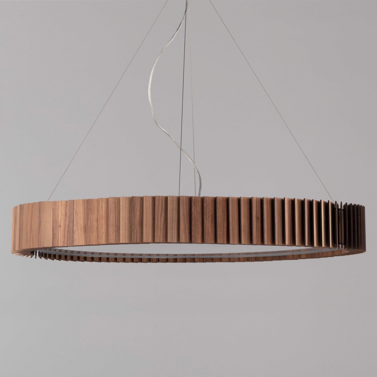 Большой Rotor диаметром 1 метр подходит для больших помещений, баров, ресторанов и просторных гостиных загородных домов. В люстру встроено 6 поворотных патронов в хромированном корпусе Е27.Натуральный шпон дерева никогда не выйдет из моды, и сочетается с массой других отделочных материалов в интерьере. Rotor может быть на струнном подвесе или крепиться в плотную к потолку. Тип крепежа в том или ином варианте имеет отличия, учитывайте это при оформлении заказа.