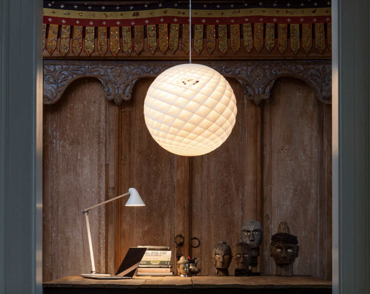 Подвесной светильник с объемным плафоном из пластика — это мягкий акцент, наполняющий интерьер уютом и светом. Геометрическая структура с рельефным рисунком создает эффект глубины и деликатную игру теней, делая освещение более живым и атмосферным.