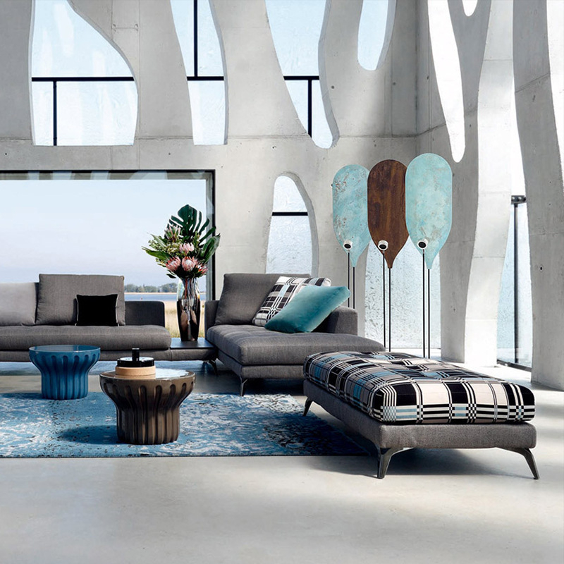 Величественная композиция сочетает холодную красоту и графичность металла. Доступный в двух классических цветах (черный синий), этот светильник становится доминантой пространства, трансформируя обычное освещение в масштабную инсталляцию.