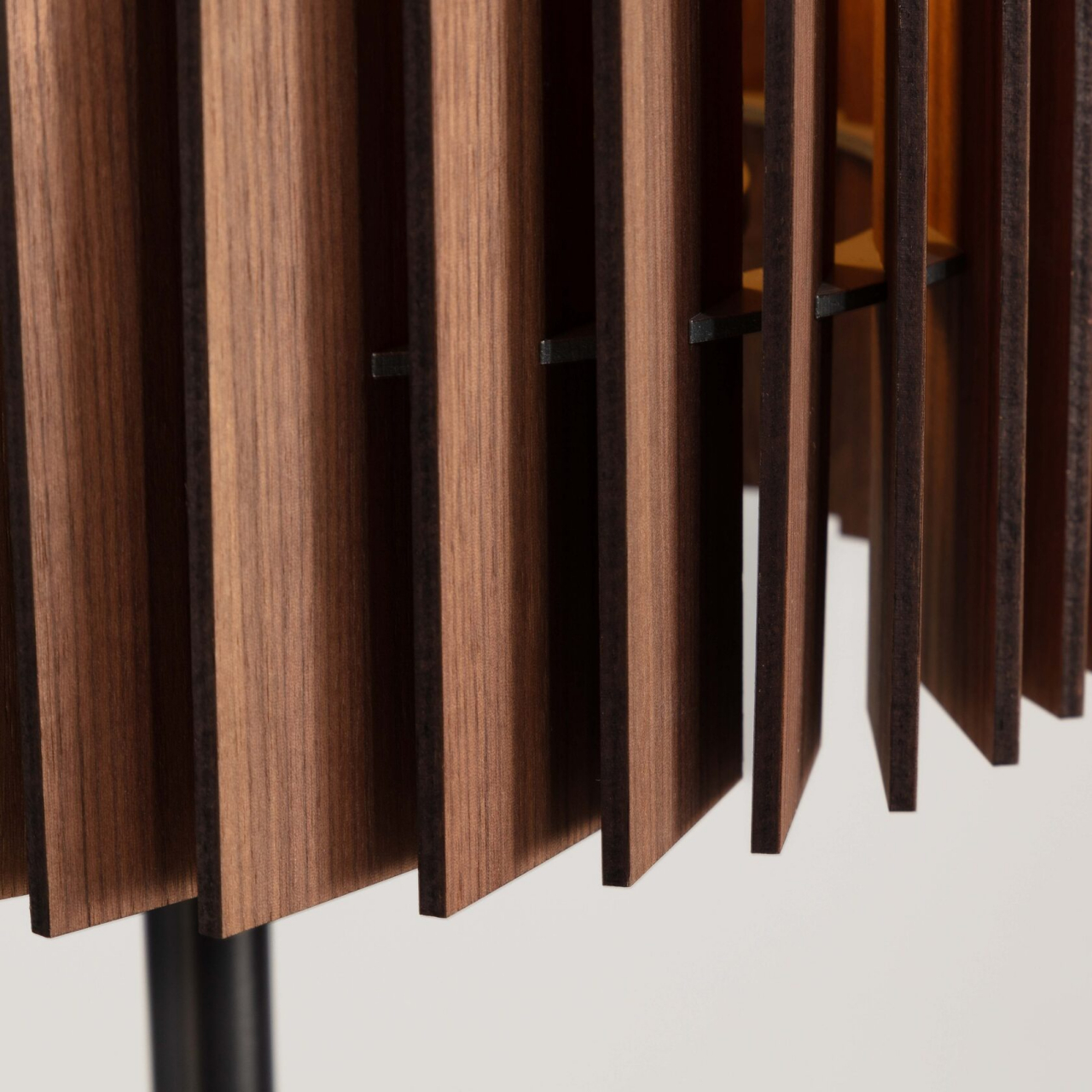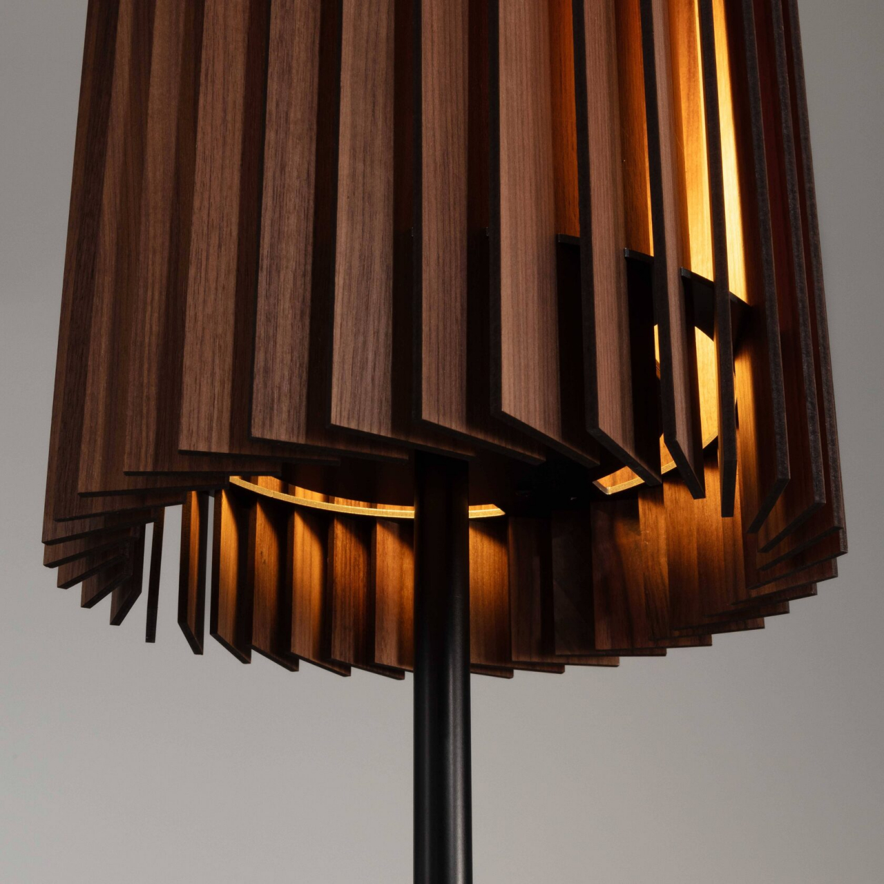 В торшере Rotor S сочетаются эко-дизайн, динамичный силуэт и спокойное настроение. Мягкий рассеянный свет направлен как вверх, так и вниз, и дополнительно проникает между установленными под углом ламелями. Пластины сделаны из натурального дерева и сохранили в себе красивый природный рисунок.Светильник будет прекрасно смотреться в уютном пространстве для отдыха. Например, в гостиной рядом с креслом, где вы будете читать вечерами, в спальне или детской.Его можно сочетать с другими светильниками коллекции ROTOR, чтобы получить гармоничный интерьер в едином стиле.