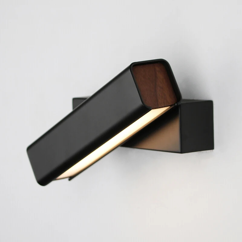 Вращающийся настенный светильник с лаконичной геометрией и выразительным контрастом материалов. Компактный корпус с тёплой внутренней отделкой создаёт мягкое направленное свечение и подчёркивает глубину света.