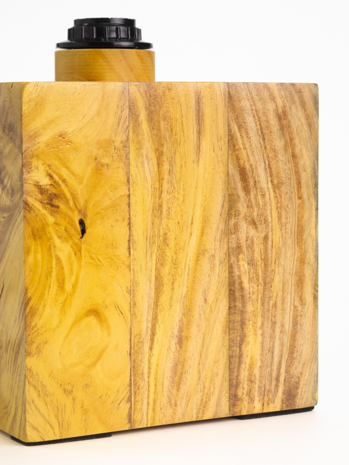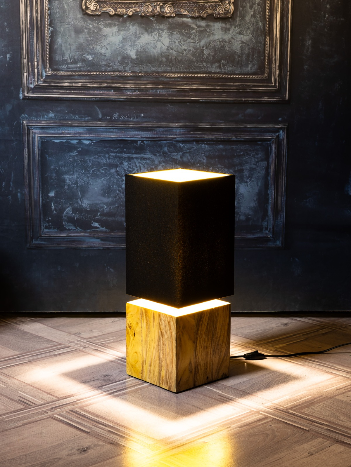 Стойка светильника выполнена из массива маклюры (ложный апельсин).Основные цвета породы: лимонный, серый, коричневый.