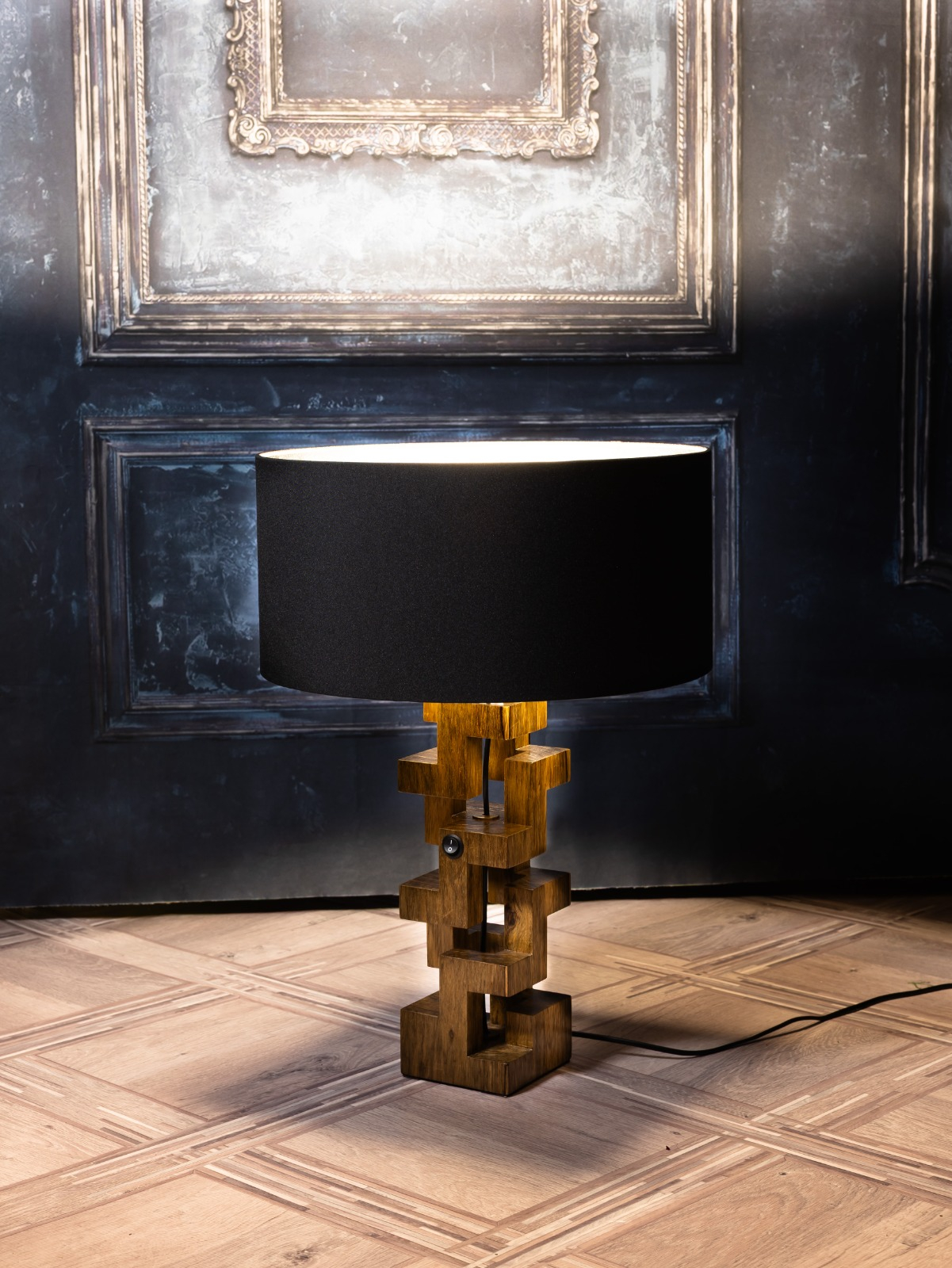 Стойка светильника вырезана спиральным рисунком из массива офрама. Спиральный паттерн создает иллюзию изменения формы в зависимости от угла зрения.Основные цвета породы: песочный, серый, коричневый, черный, золотистый. Стойка меняет цветв зависимости от освещения. Когда бы Вы не посмотрели на нее, она всегда будет разной.Абажур можно изготовить любого цвета, формы и размера.